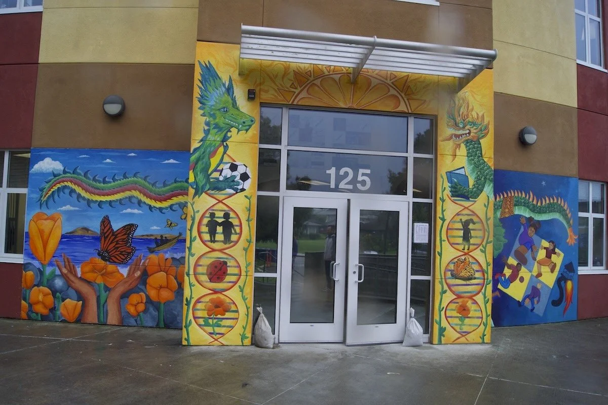 Murals Projects from the Bay and Beyond "Read, Imagine, Grow" 2025 Co Directed with Keena Romano, Venetia Valley K-9 San Raphael Ca. "We Are Rooted: A Song For Mother Earth" 2025 Acrylic on Concrete Laney College Oakland, CA. "Untitled Street Art" 2025 Spray paint and acrylic paint Oakland, CA. "Building Bridges" 2025 Acrylic on concrete Brookside Elementary, San Anselmo, CA Untitled Collaboration with Los Pobres Artistas 2021 "Imaginative Universe" 2023 Acrylic on concrete Bahia Elementary, San Raphael, CA.